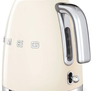 Smeg, KLF03CREU 1,7 L kedel, blød åben kande lukning, aftageligt rustfrit stål anti-kalk filter, automatisk slukning ved 100°C, skridsikre fod, 2400W effekt, creme